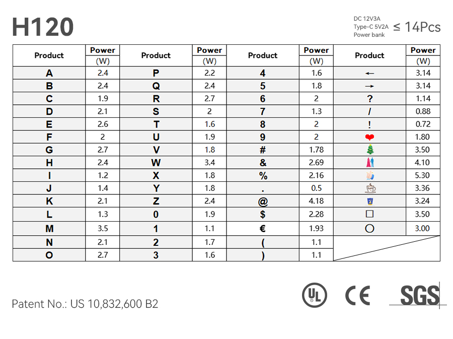 12V/3A adapter with a maximum drive of 14PCS letters and 12V/5A adapter with a maximum drive of 24PCS letters